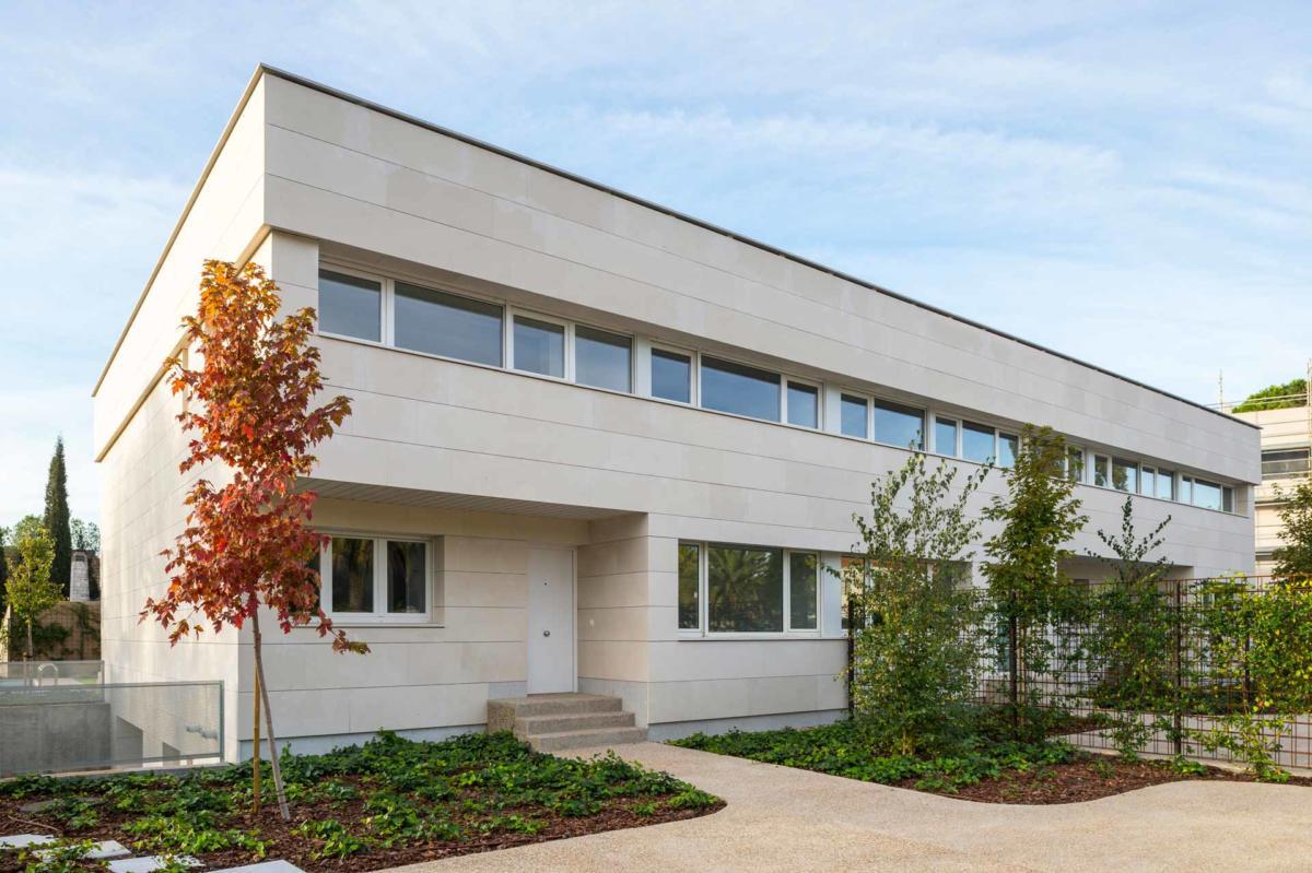 Die Verkleidung der Fassaden mit hellem Kalkstein in Verbindung mit einer dunklen Bambusverschalung der Veranden verleiht dem Gebäude ein völlig neues Aussehen, während die horizontalen Linien des originalen Baus betont werden, um den einheitlichen und großzügigen Charakter zu verstärken.