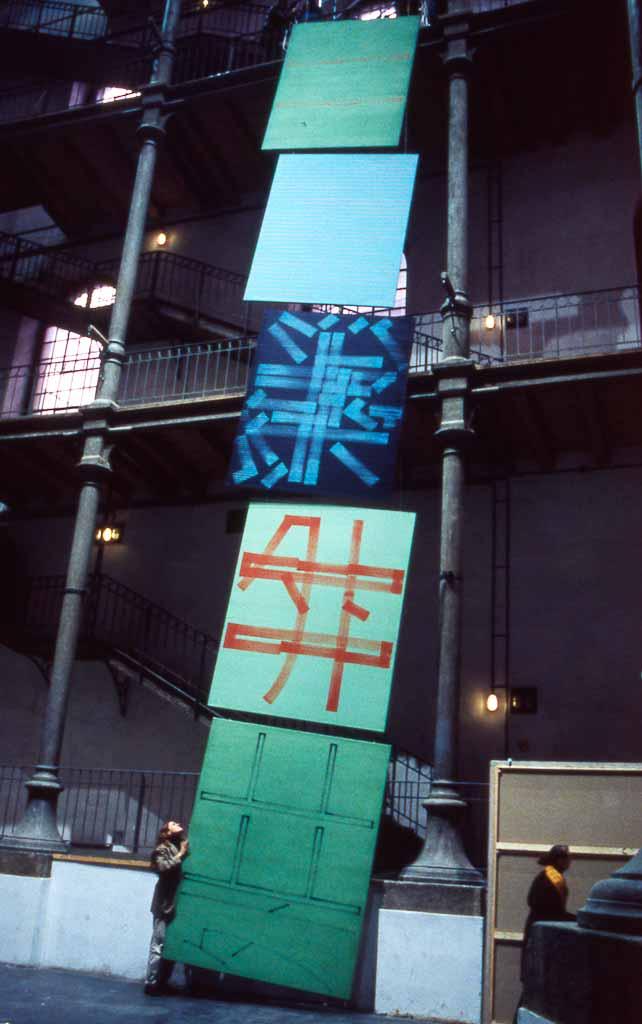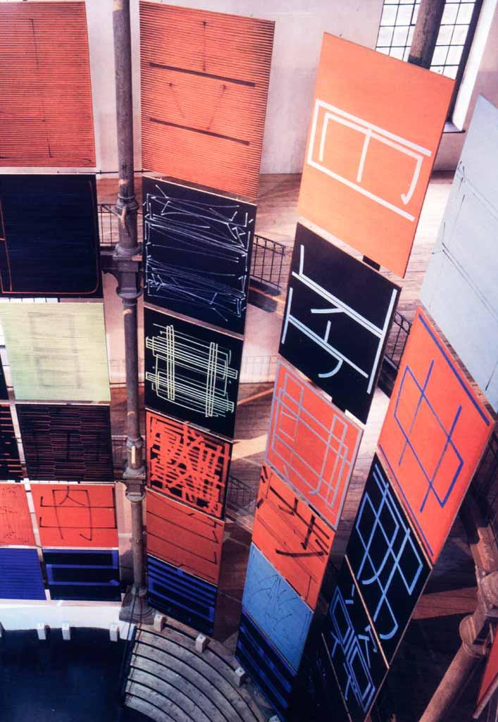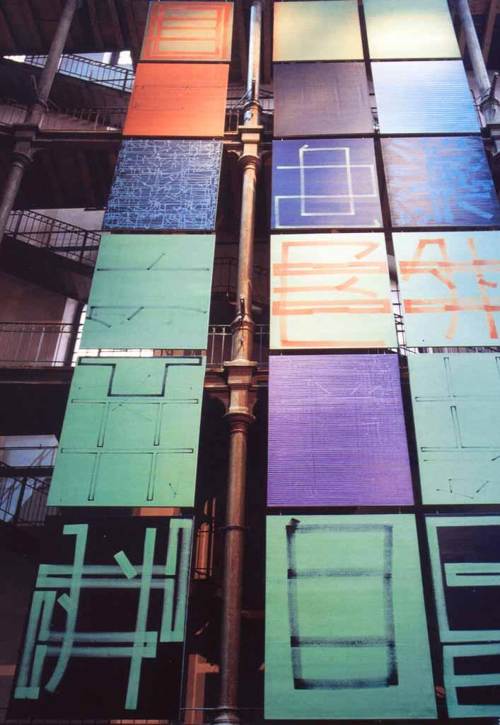 49 Malereien im Format 2m x 2.5m bilden ein Gesamtbild, ohne dabei ihre Identität als Einzelbild zu verlieren.