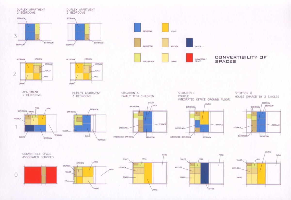Was in der Biologie die Zellen sind, sind in unserem Projekt die Wohneinheiten und der öffentliche Raum zwischen ihnen, ein Gefüge aus offenen und geschlossenen Räumen. Verschiedene Größen und Nutzungen wechseln einander ab und fördern die Durchmischung der Aktivitäten. Flexible Einheiten ohne festgelegten Nutzen sind in das Gewebe eingefügt, die nach Bedarf als Wohnungserweiterungen, Gemeinschaftsflächen, Geschäfts- oder Gastronomielokale, Büros oder für soziale Funktionen wie Kindergärten genutzt werden können. Die Orientierung des Haus-Typs zu einem privaten Patio ermöglicht eine weitgehend freie Aneinanderreihung der Einheiten. Die Erschliessung ist dem Maßstab des Fußgängers angepasst, die Zufahrt ist eingeschränkt möglich.