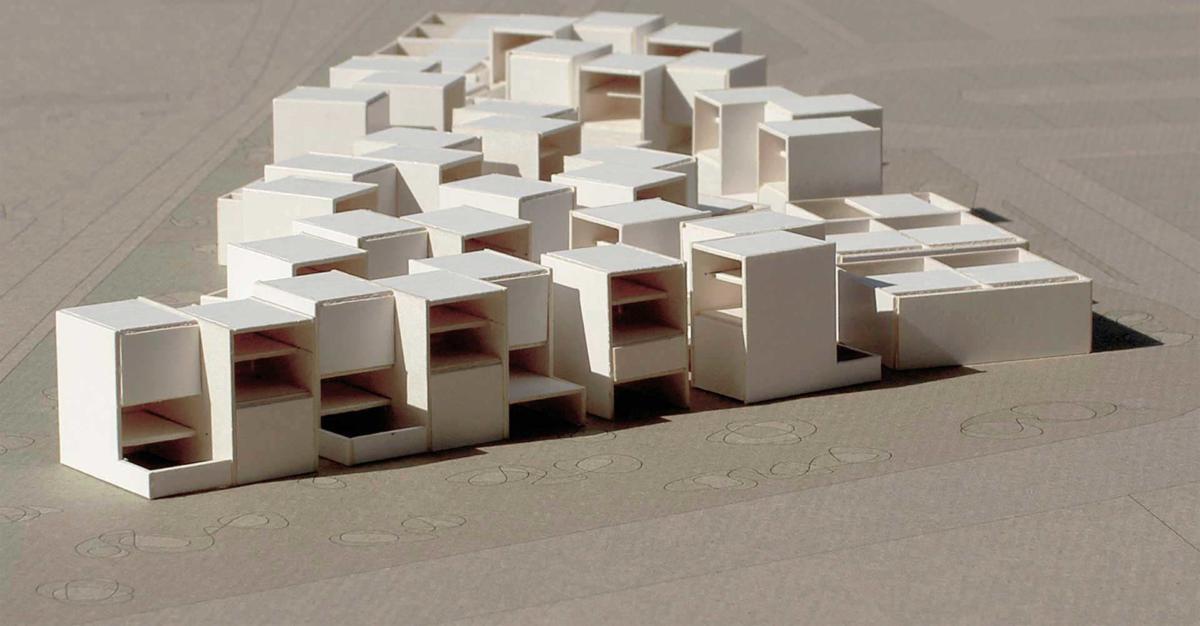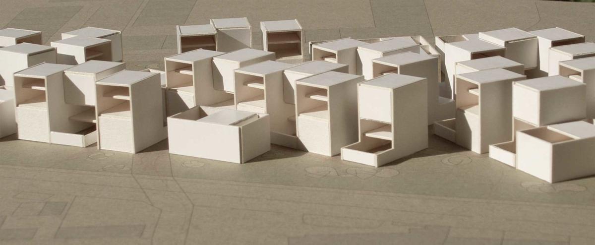 Der vorgegebene Standort ist ein kleiner Flicken im urbanen Gewebe der portugiesischen Stadt Évora, eingekeilt zwischen Zonen mit verschiedener Bebauungsdichte und -höhe. Dieser Flicken liegt genau an der Grenze zwischen dem historischen Kern und den Erweiterungsgebieten, zwischen Stadt und Vorstadt. Das Wachstum in diesen Gegenden hat sich in einer ungeplanten und weitgehend unkontrollierten Weise entwickelt.