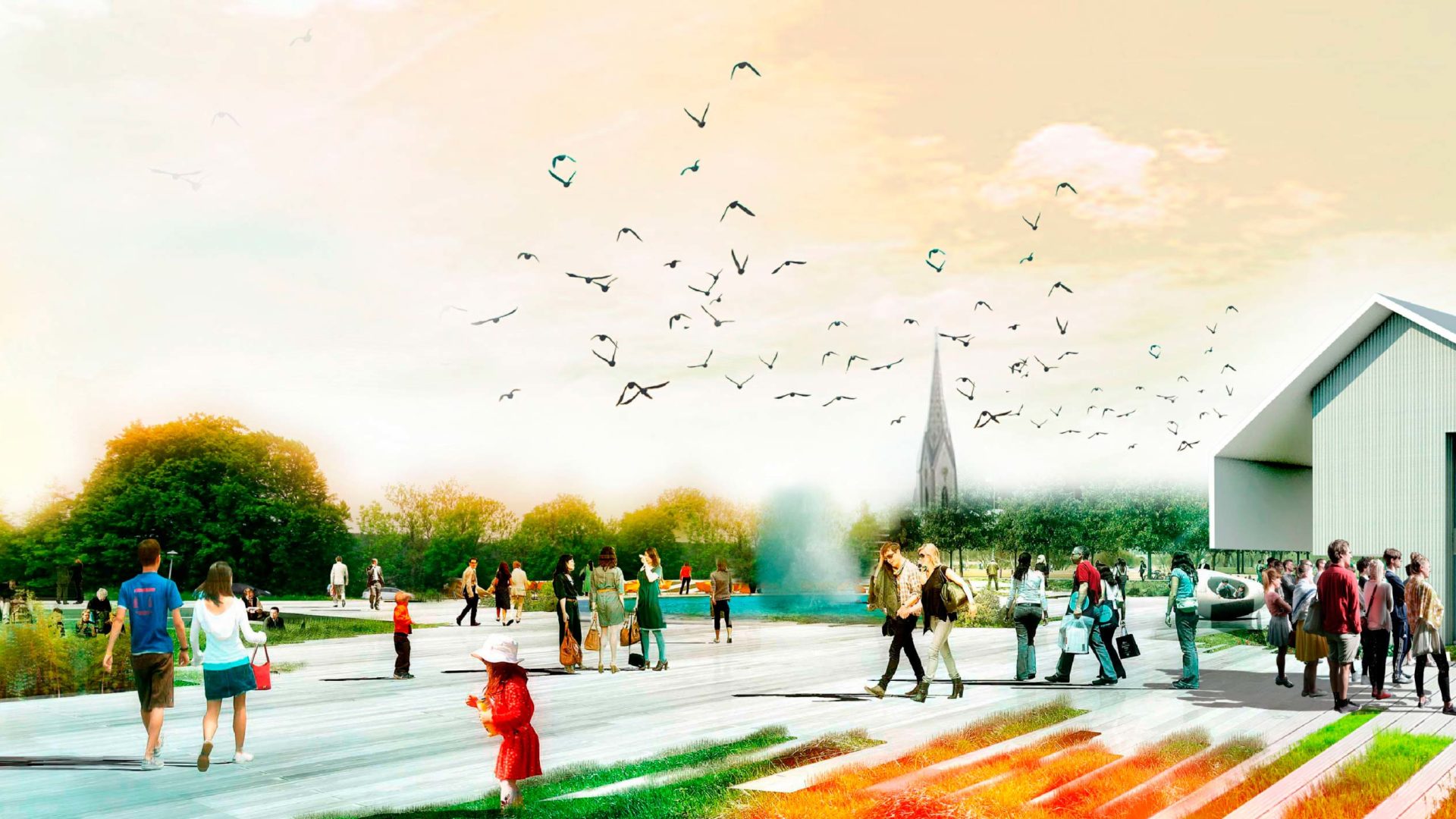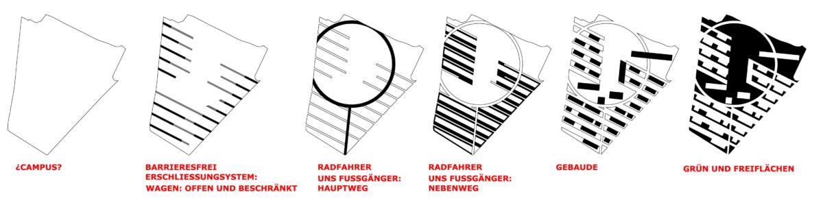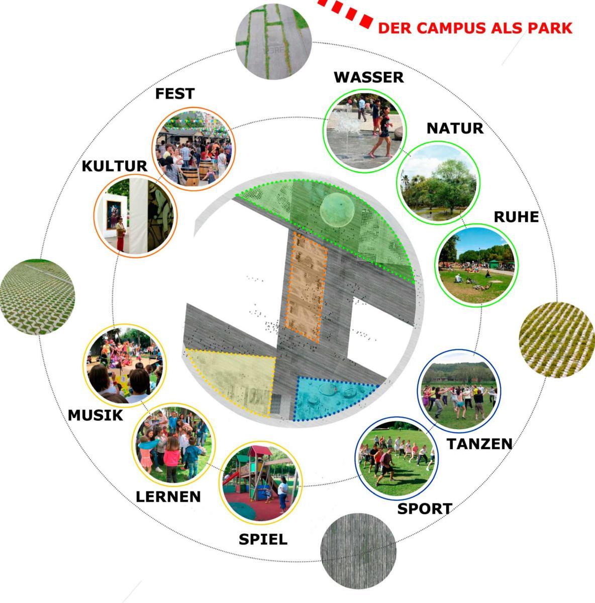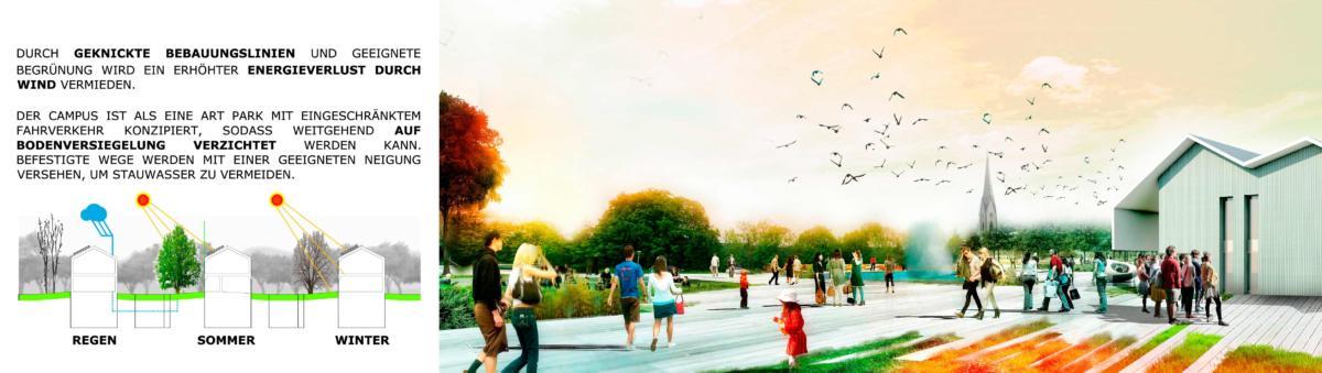 Die Schaffung des Lebensraum-Campus erfüllt auf diese Weise mehrere Funktionen, die das Erscheinungsbild Oberteuringens verändern und beleben sollen. Er soll einem bewohnten Park gleichen, in dem sich der den einzelnen Gebäuden zugeordnete Außenraum durch subtile Eingriffe (leichte Geländestufen, Vegetation) vom öffentlichen Raum abgrenzt und befestigte Flächen und Grünland  scheinbar nahtlos ineinander übergehen. Der Besucher erkennt auf diese Weise instinktiv, dass er sich auf einem Gelände befindet, dass zwar Teil des städtischen Gewebes ist und dieses fortsetzt, gleichzeitig jedoch eine Alternative zu den herkömmlichen Stadtstrukturen darstellt.