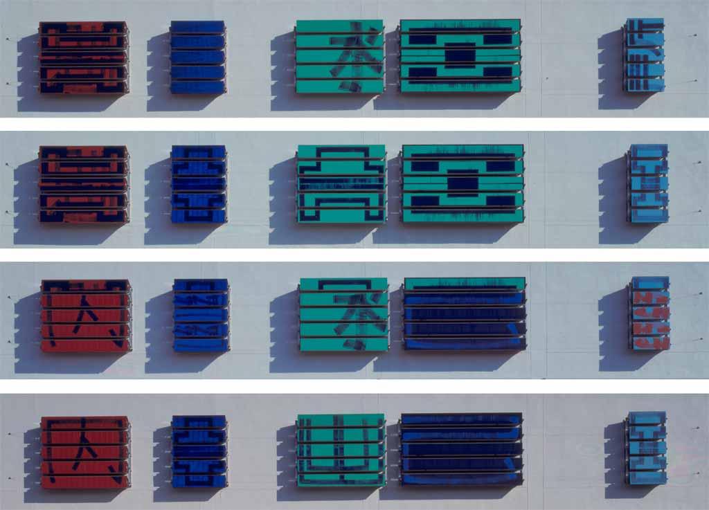 Das Kunstwerk bedeckt eine Oberfläche von 36m x 3m. Es besteht aus 75 bemalten Panelen, die in Fünfergruppen angeordnet sind, und den Freiräumen zwischen ihnen. Jede Variation zeigt 15 Panele. Während der Drehungen, die in ungleichen Abständen passieren und unterschidelich viele Panele betreffen, verschwindet ein Teil des Bildes, um gleich darauf in neuer Gestalt wieder zu erscheinen.