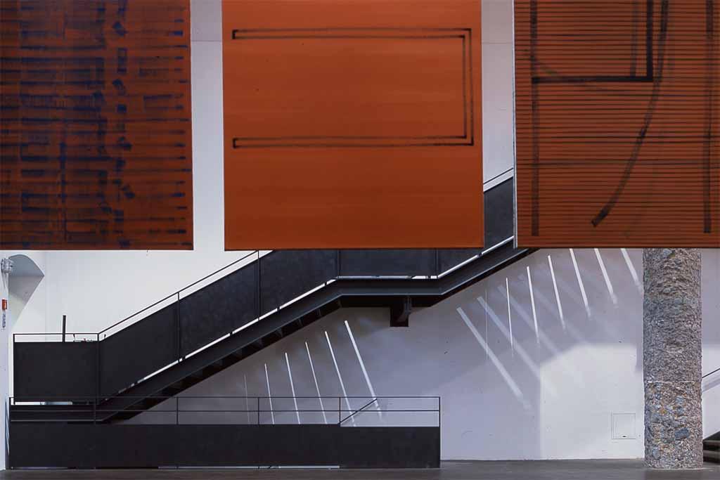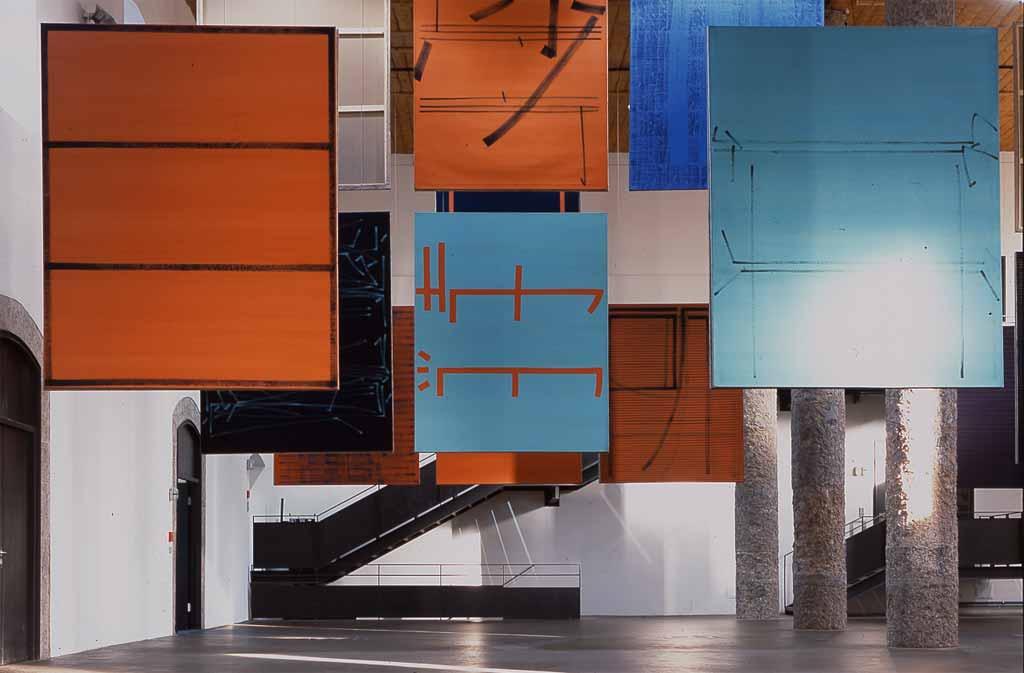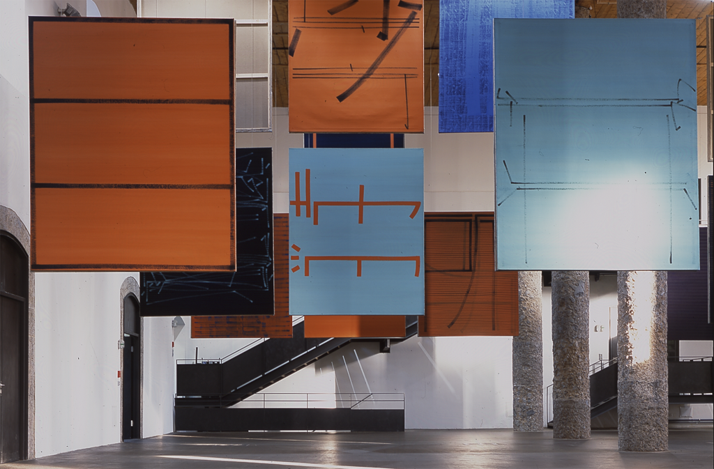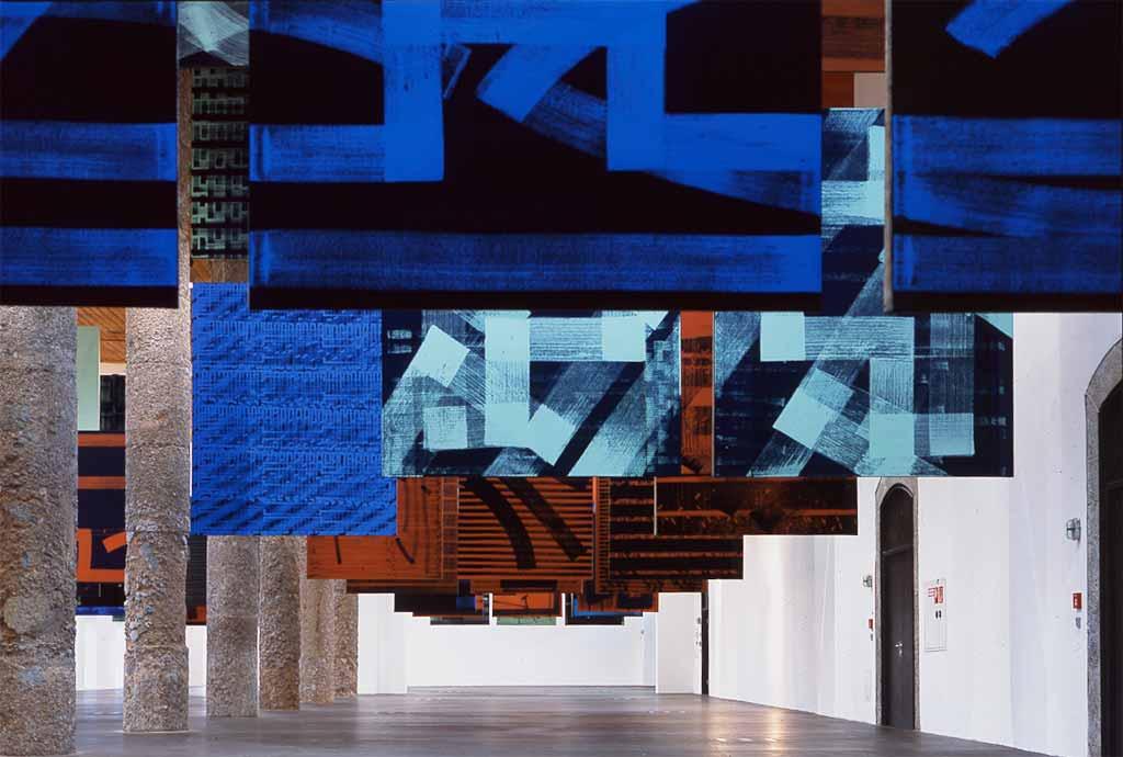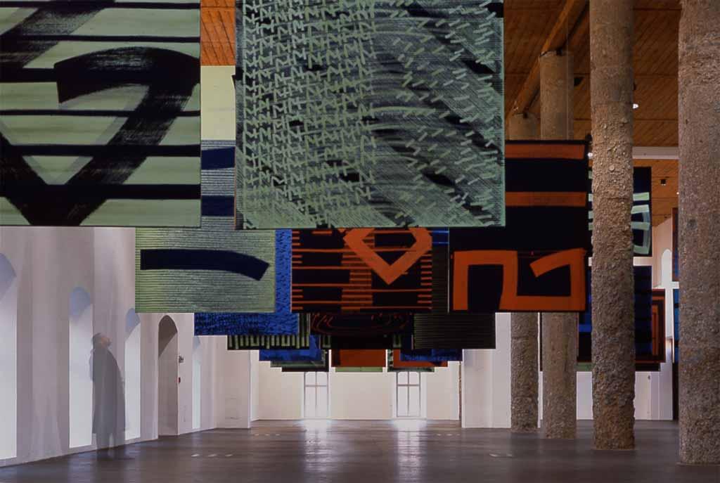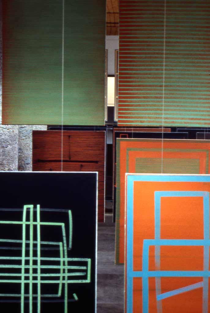 Die Serie von 141 Malereien im Format 2m x 2.5m wird in Form von doppelseitigen vertikalen Panelen gezeigt, die über Kopfhöhe des Besuchers frei im Raum hängen und so das individuelle Experimentieren mit Raum, Dimension, Rhythmus und Intensität der Bilderfolge ermöglichen.