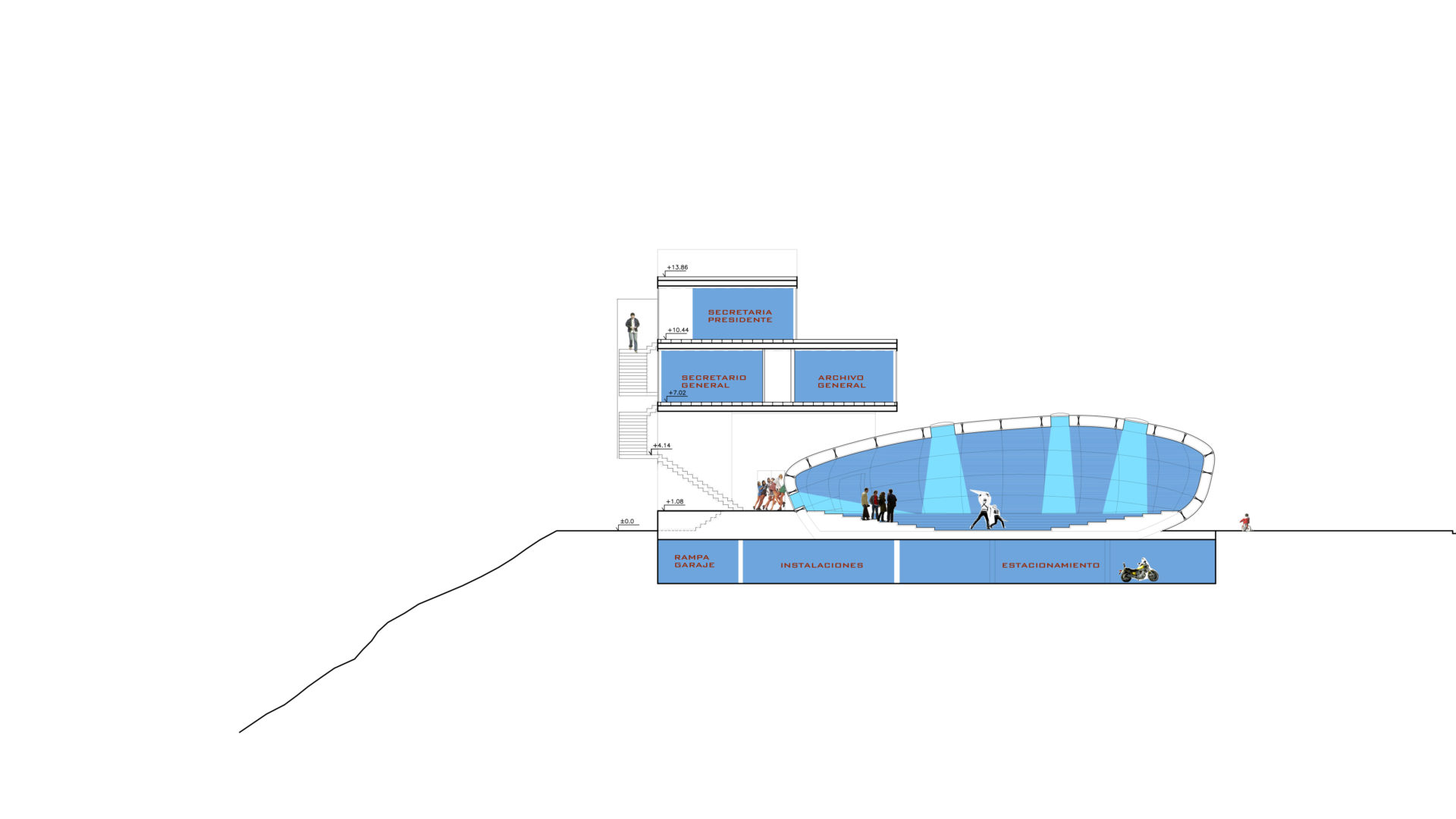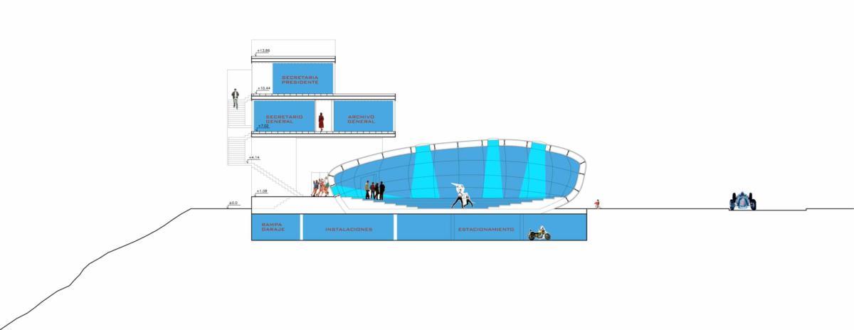 Die Intervention soll einen Beitrag zum öffentlichen Leben der Stadt Valladolid bieten, der entstehende Platz an einer strategisch wichtigen Stelle des urbanen Gefüges soll zur öffentlichen Nutzung einladen und einen Kontakt zum Flussufer herstellen. Der Kontrast zwischen dem betont funktionalen Administrationstrakt und dem organischen Volumen des Auditoriums gliedert die Baumasse und hebt den öffentlichen Charakter des Gebäudes hervor.